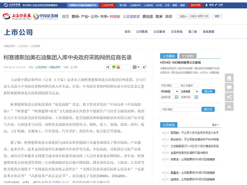 柯賽德斯加美石油集團(tuán)秉持“綠色潤(rùn)滑”理念,旗下管理著包括“中訊高科(中訊潤(rùn)滑油)”、“柯賽德”、“柯賽德斯-加美”3大潤(rùn)滑油在內(nèi)的多個(gè)能源生產(chǎn)與經(jīng)營(yíng)方面的品牌。集團(tuán)公司正全力以赴包括車用潤(rùn)滑油、工業(yè)潤(rùn)滑油、航空潤(rùn)滑油和船舶潤(rùn)滑油在內(nèi)的石油產(chǎn)品開發(fā)與升級(jí)、石油技術(shù)與應(yīng)用,深耕涉及潤(rùn)滑油應(yīng)用的電力、鋼鐵、化工、玻璃、造紙、紡織、航運(yùn)、工礦機(jī)械、金屬加工、汽車制造、汽車養(yǎng)護(hù)、海洋作業(yè)、航天航空等領(lǐng)域。