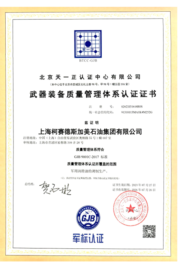日前,上??沦惖滤辜用朗图瘓F有限公司在質(zhì)量管理、生產(chǎn)制程和技術(shù)創(chuàng)新方面再上新臺階,實現(xiàn)質(zhì)量管理體系認證的重大突破,取得“武器裝備質(zhì)量管理體系認證”GJB9001C-2017證書。