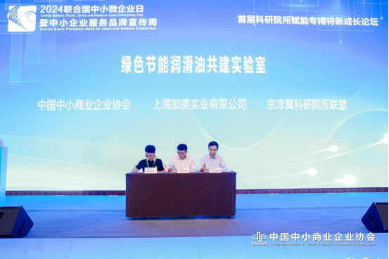 6月27日,“2024聯(lián)合國(guó)中小微企業(yè)日暨中小企業(yè)服務(wù)品牌宣傳周——首屆科學(xué)企業(yè)家論壇”在北京舉辦,本次活動(dòng)由中國(guó)中小商業(yè)企業(yè)協(xié)會(huì)主辦。28日,由中國(guó)中小商業(yè)企業(yè)協(xié)會(huì)、上海加美實(shí)業(yè)有限公司、京津冀科研院所聯(lián)盟三方共同發(fā)起的“綠色節(jié)能潤(rùn)滑油共建實(shí)驗(yàn)室”正式設(shè)立。上海加美實(shí)業(yè)有限公司董事長(zhǎng)、上海柯賽德斯加美石油集團(tuán)有限公司葉文賢出席了簽字儀式。